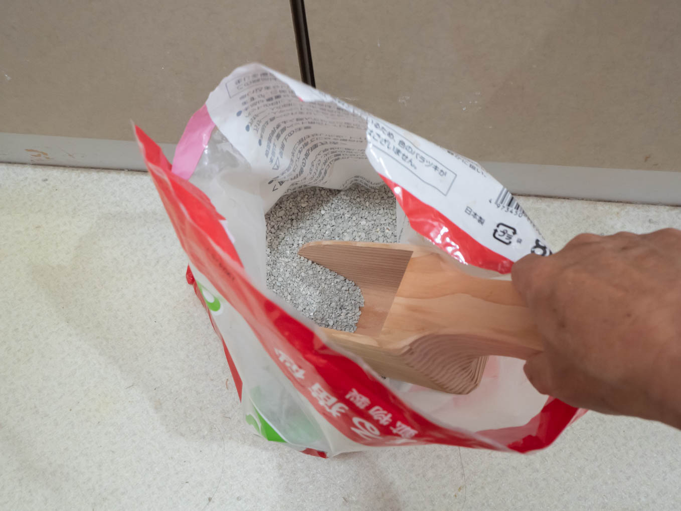 実際に使ってみました。行き当たりばったりで作ったにしては、なかなか良く 、適度な量の砂をすくうことができました。