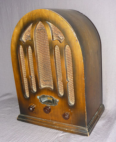 ミゼット型のラジオを作っています。この型のラジオは、終戦前後の日本の茶の間のシーンでよく見かけます。日本ラジオ博物の資料によると、このミゼット型と呼ばれた砲弾型のラジオは1930年代前半に製造されていたようです。製造年代からすれば終戦後もしばらくの間は使われていたのでしょう。代表的なのはこの写真のようなデザインです。