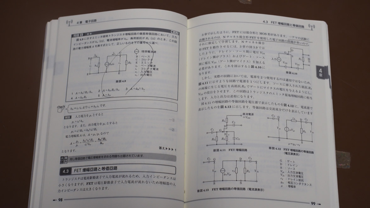 - この際、まじめに勉強し直すこととして、「電気物理」、「電子回路」の理論を基礎から理解し、必要な公式や無線機器特有の知識を一通り覚えてから、後半は過去問を中心に網羅的に勉強する。