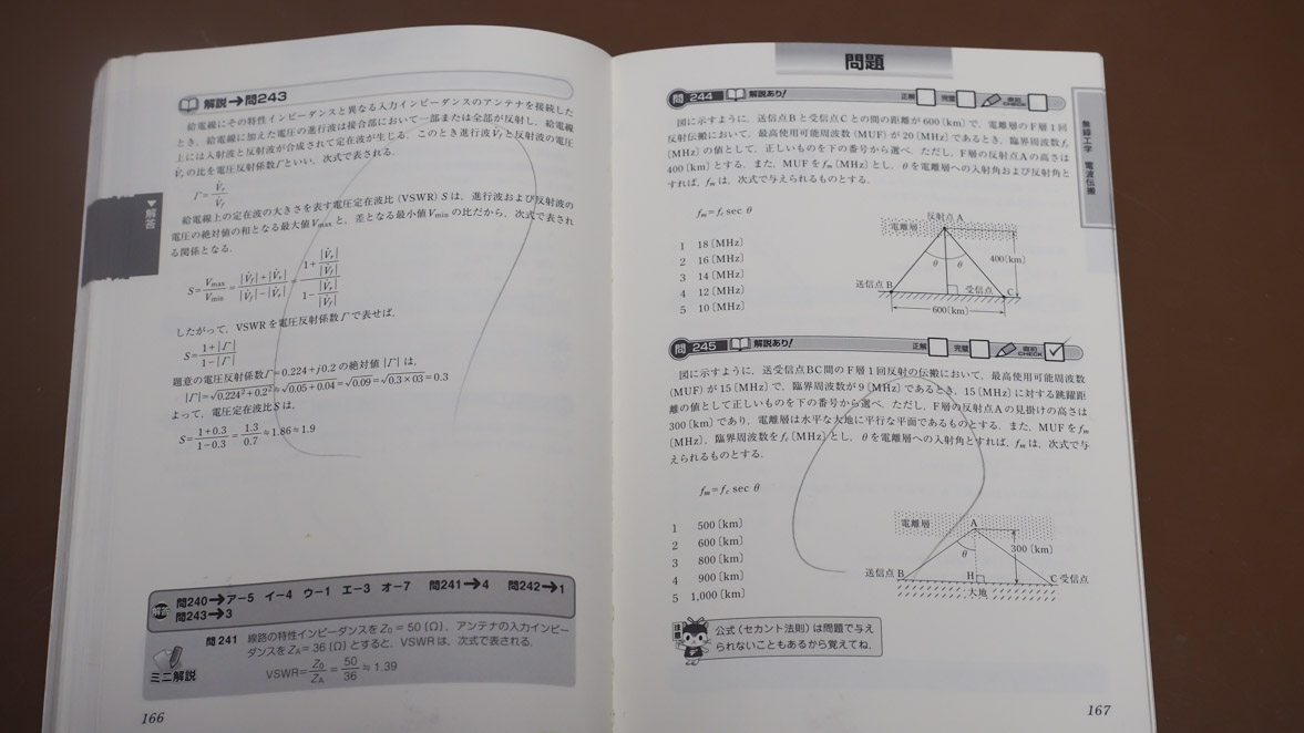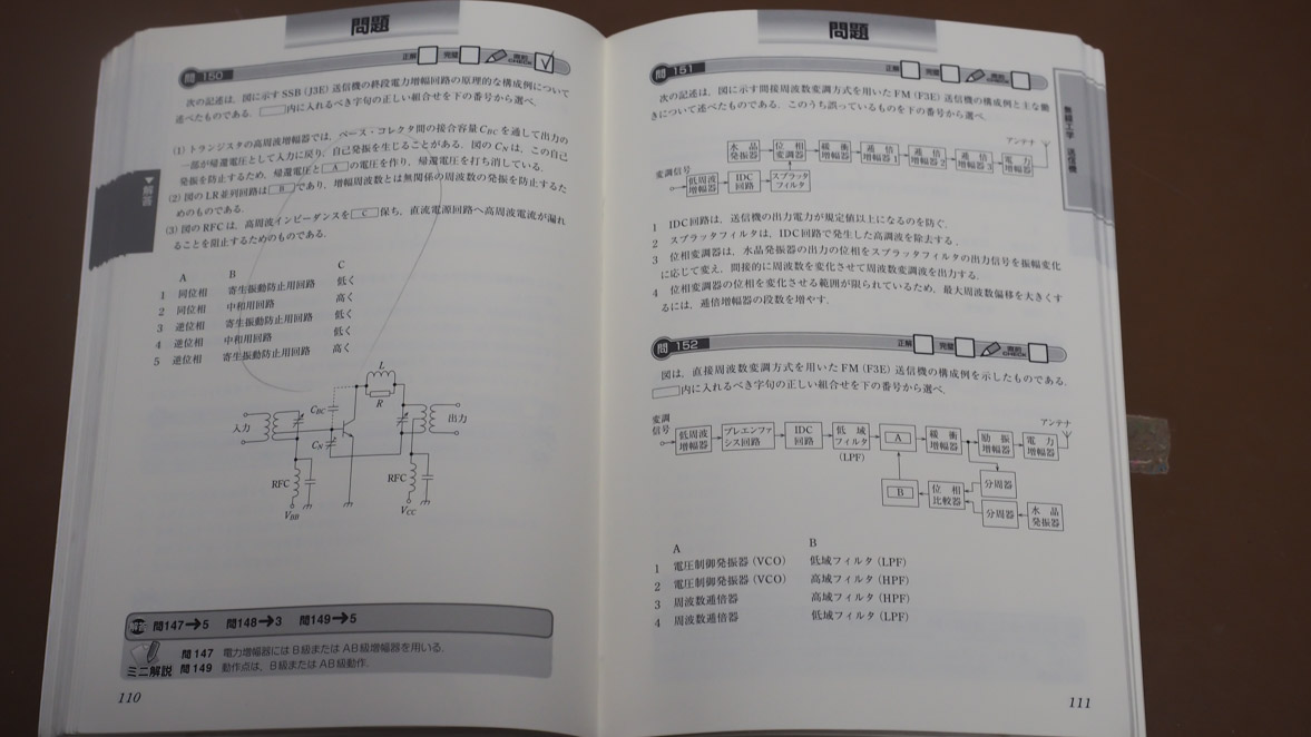 法規はほとんど既出問題あるいはそのアレンジ問題なので正に記憶力との勝負でした。無線工学は、ざーっと眺めたところ7割ぐらいが既出問題あるいはそのアレンジ問題で、見たことのない問題は2割ぐらいでした。ヨーシ、これならどうにかなるぞ、と気を引き締めて取り組みました。本番では2時間30分という時間は十分に長く、見直しもできましたが、なにしろ寝不足と鎮痛剤のおかげで、終わりの方は目を伏せて寝てしまうような状況でした。