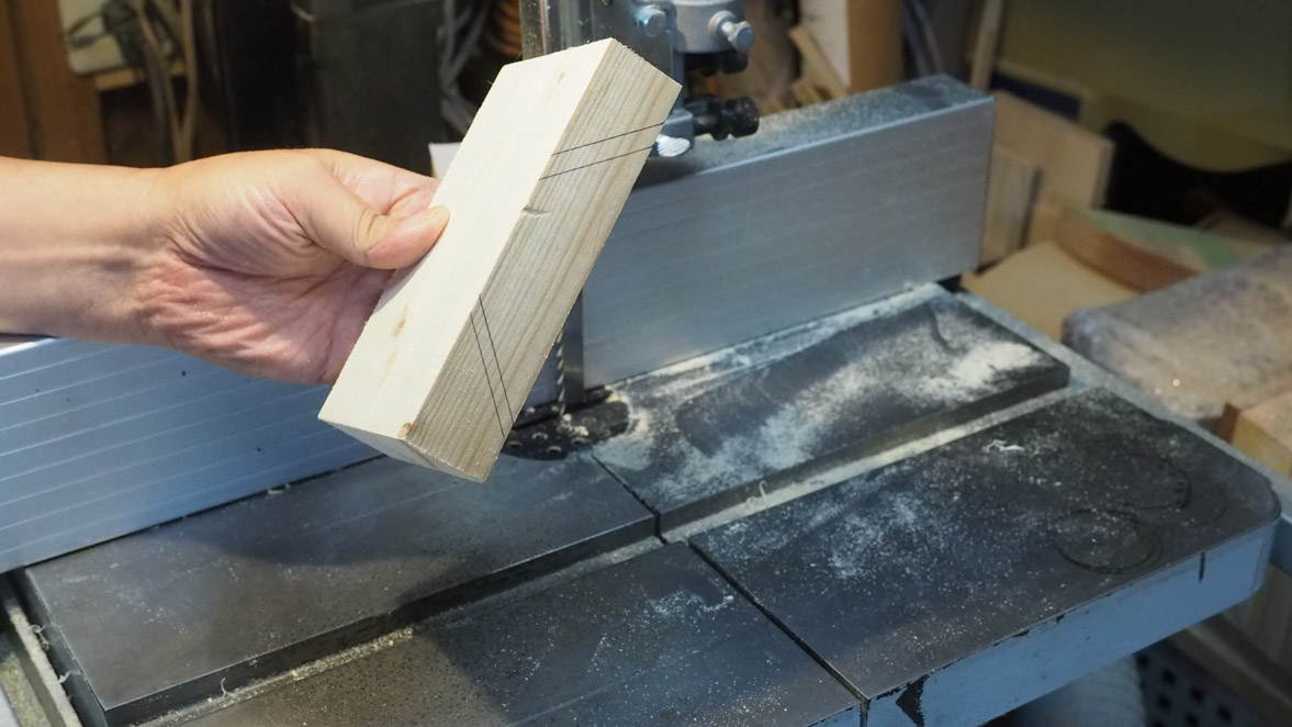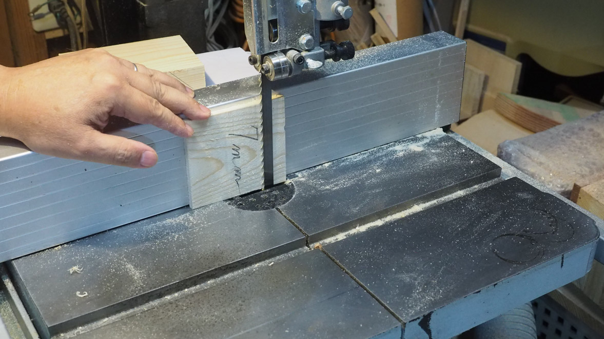 先ず、2×4のパイン材を作品の大きさに合わせて切り出します。