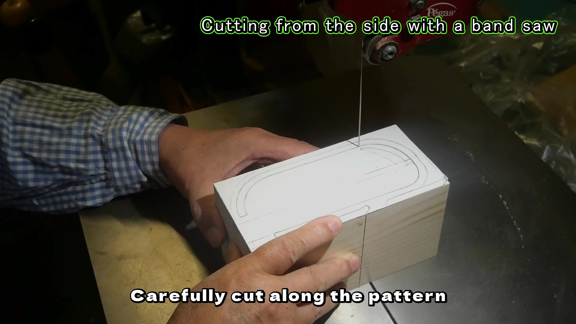 バンドソーで切り抜いているところです。