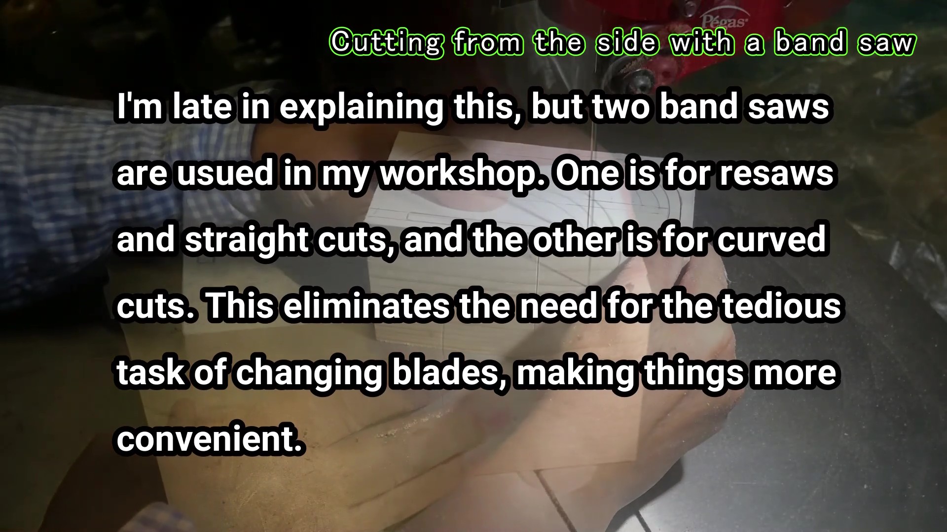 バンドソーだけで作ることと、帯状の蛇腹に仕上げるのに麻糸を使ったところは、結構新規性があるように思います。いつものように動画をアップしてあるので、その反響が楽しみです。また、今回は動画制作の新機能として、テキスト読み機能を試してみました。次の箇所に使ってみました。最初の動画タイトルとそのあとの趣旨説明、そして、動画途中でバンドソー2台体制の説明部分 です。私が作る動画ですから、声の主はシニアーにしました。もちろん英語です。使っている動画アプリは、WondershareのFilmoraですが、なかなかのAI機能です。私(?)の渋い声を聴いて妻も褒めていました。