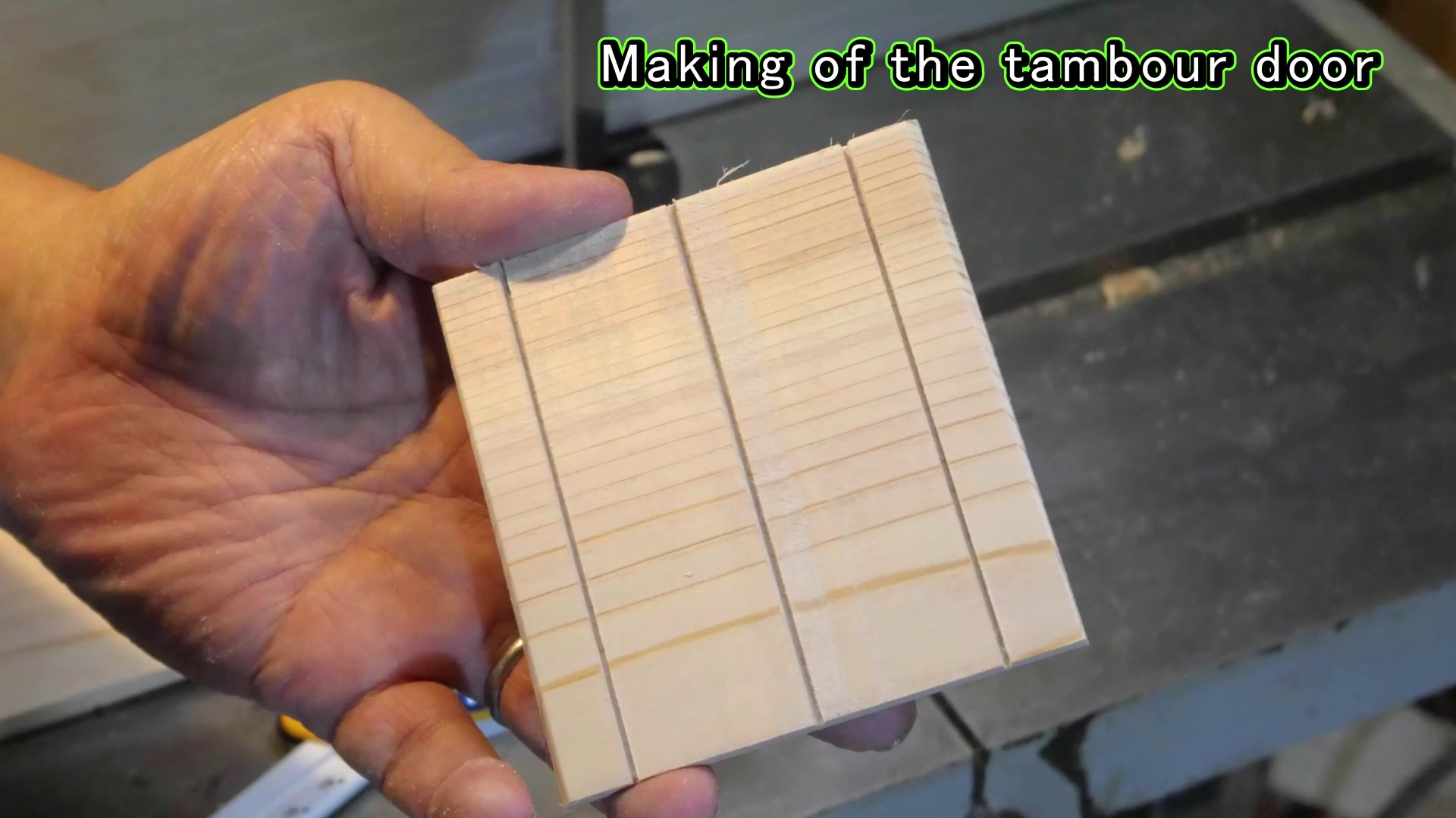 タンブール・ボックスで一番特徴的なところは、蛇腹状の扉の機構です。蛇腹状の扉を浅い溝で両脇から挟んで、溝に沿って扉がスライドするのですが、溝が正確にきれいに彫られていて、かつ、溝のルートが滑らかなカーブを描いていないと、動きがギクシャクしたり、動かなくなったりします。