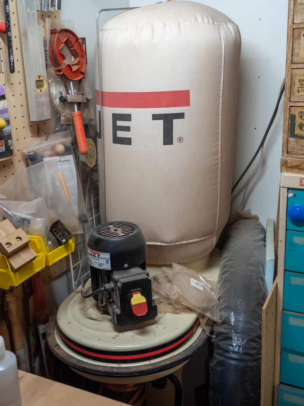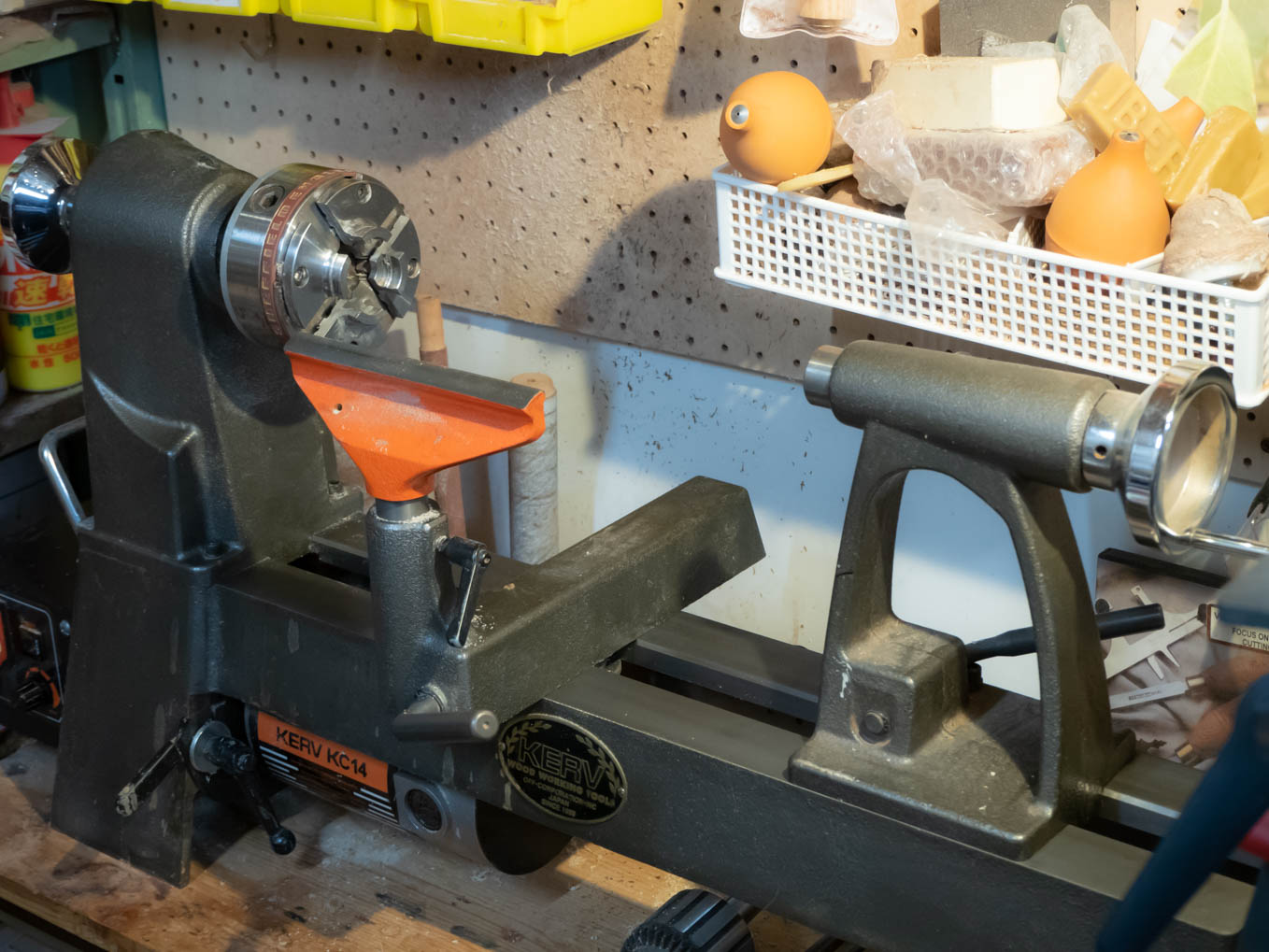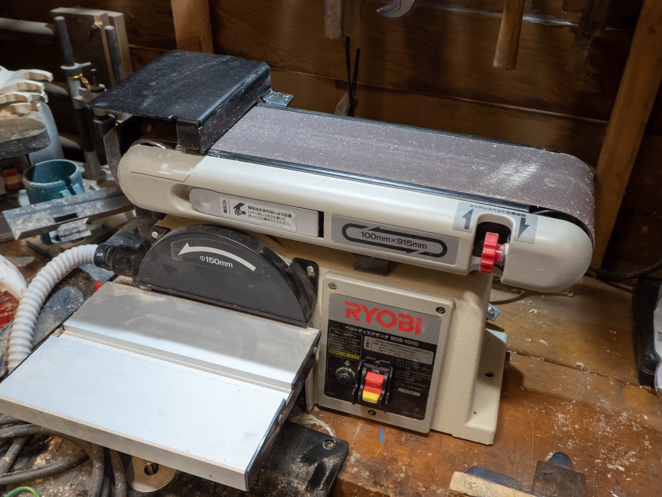 狭いのが難点ですが頑張って大きな機械も入れています。大物は14インチのバンドソー、そして木工旋盤と集塵機といったところです。一番の働き者はバンドソーです。電動丸鋸を据え付けた昇降盤を使っていた時期もありますが、騒音も含めて歳と共にだんだん恐ろしくなってきてバンドソーに替えました。バンドソーも木工旋盤も安全で音も静かなので真夜中の作業も問題ありません。