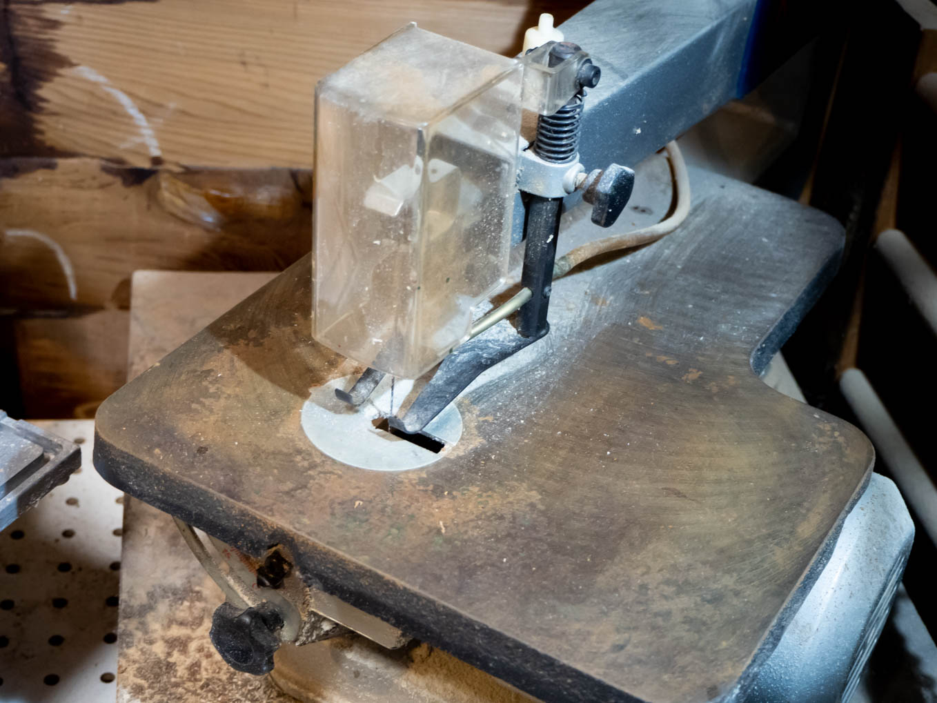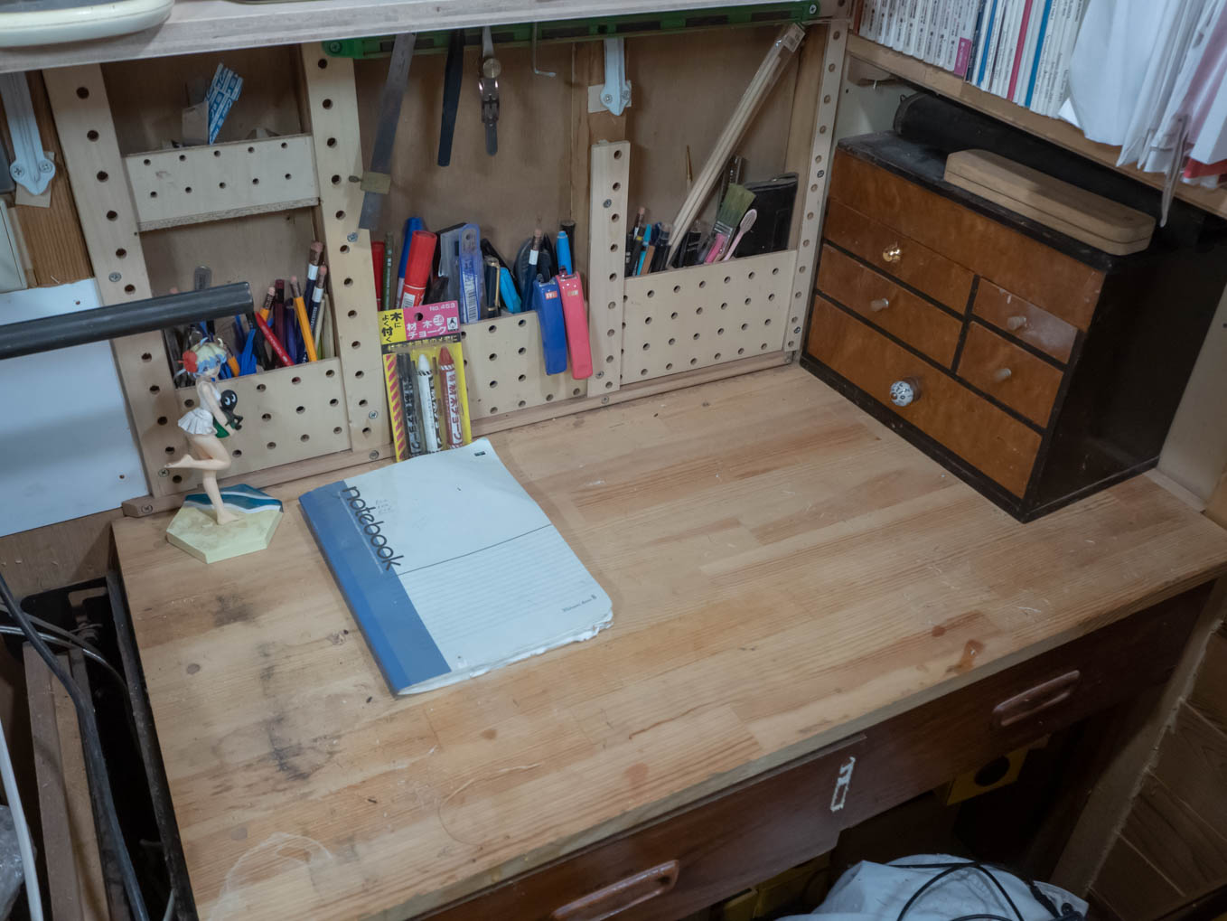 そのころ趣味の木工を行う場所が家の中でなかなかもらえずに困っていました。訳あって建て増しを続けていた古い我が家には階段が2ヶ所ありました。そこで、1つを使わないことにして、その階段と上りきったところの半畳ほどのおどり場を木工を楽しむ場所として使っていました。狭い場所にいろいろな機械を置いての作業ですし、何しろ家の中ですから木屑をいつも綺麗に片付けなければならず、文字通り上へ下へと行ったり来たりして木工を楽しんでいました。