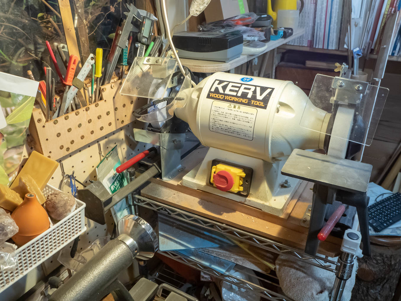 その他、必要と物欲に任せていろいろな機械があります。ボール盤、電動サンダー、電動糸鋸、電動カンナ、卓上バンドソーなどなど、そして機械ではありませんがお気に入りのショーベリー社(スェーデン)の作業台があります。